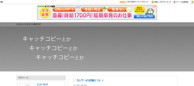 なお、今回は上記に表示されている画像の「カスタマイズのテスト用ブログ」という