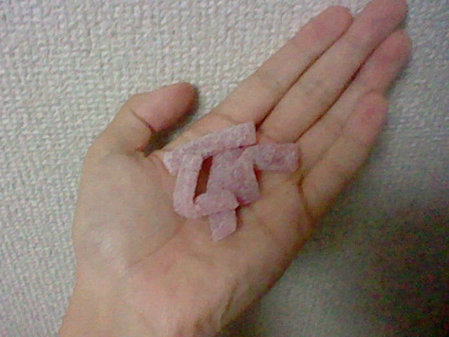 それなりの厚みがありますし、いわゆる”白いコーティング”があるので、余計に普通のグミっぽい感じに。