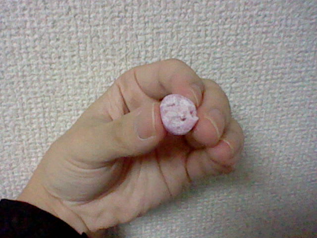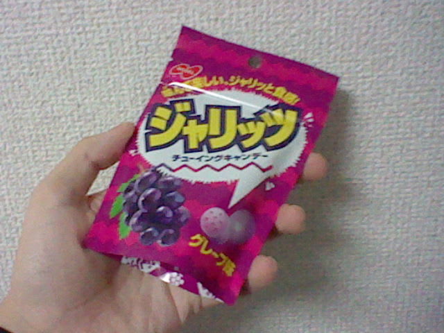 味は至って普通の、グレープ味のチューイングキャンデー。メントスを思い出します。