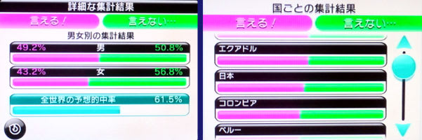 Wii「みんなで投票チャンネル」集計 2012/07/04