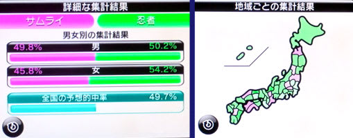 サムライ = 48.1% VS 忍者 = 51.9%
