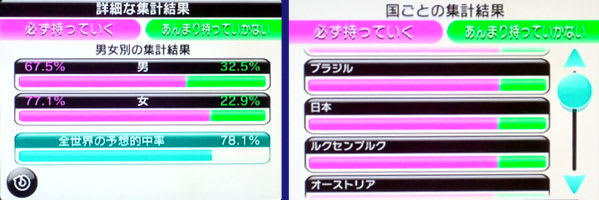 フランスで85%:15%。ノルウェーで60%:40%。基本的にどこも、「必ず持っていく」が過半数を上回っていたようですね。