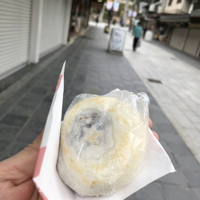 抹茶とは違いよもぎなんですが、やはり緑色はイヤなんでノーマルの梅ヶ枝餅にしました(笑)