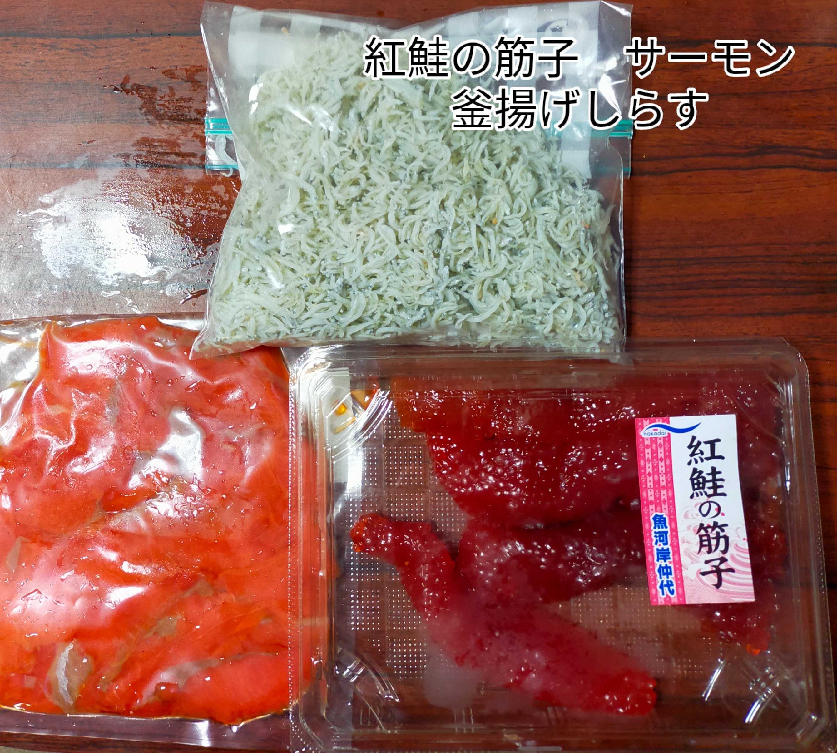 釜揚げしらす 生サーモンパック 紅鮭の筋子