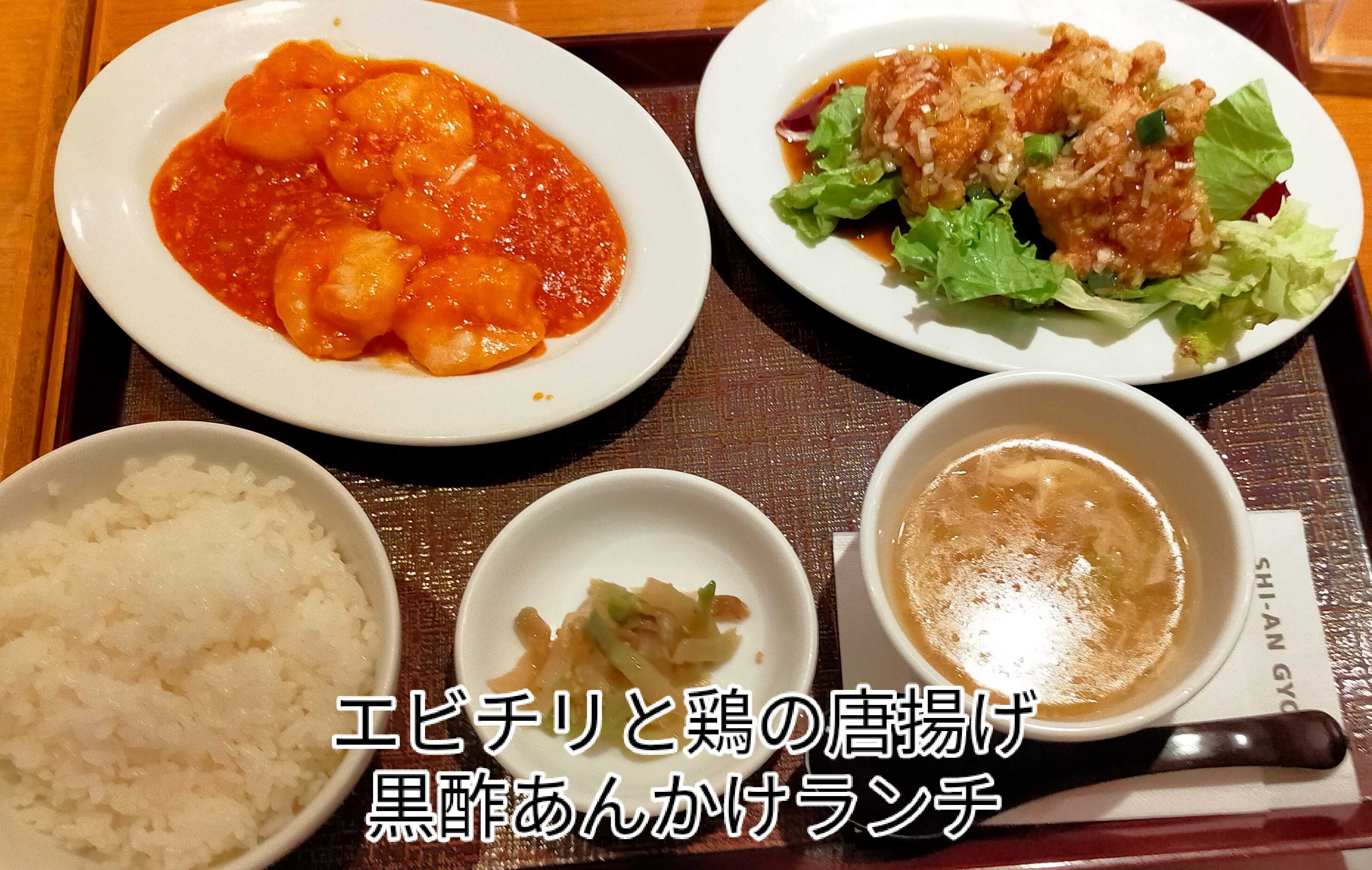 ちーちゃんはエビチリと鶏の唐揚げ黒酢あんかけランチ