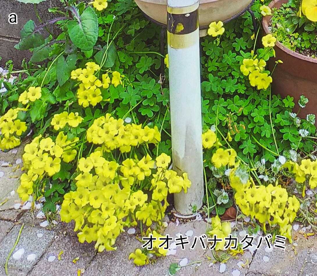 歩道の脇に鮮やかなオオキバナカタバミが咲いていました