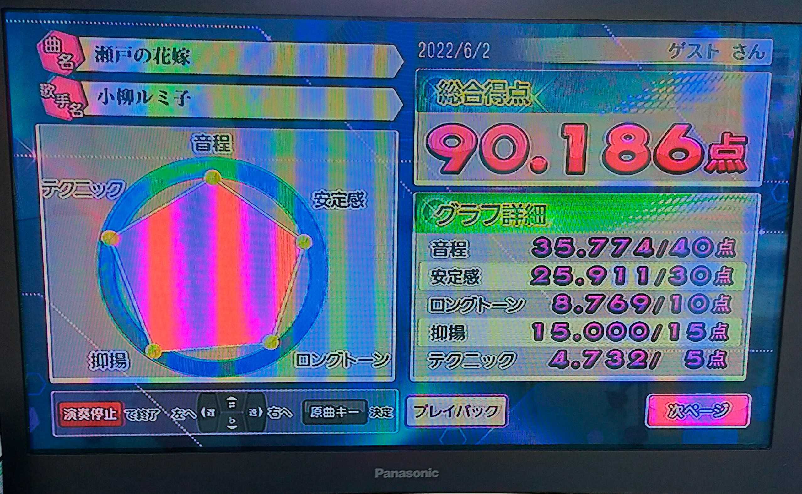 👑 高得点3曲目 瀬戸の花嫁 小柳ルミ子 90·186