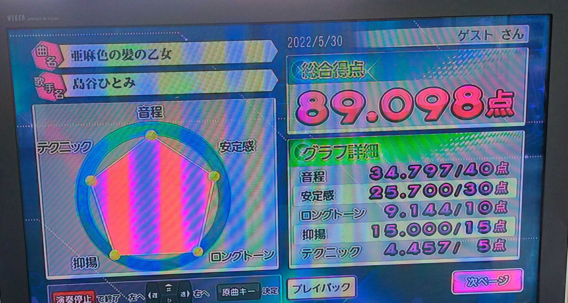 亜麻色の髪の乙女 島谷ひとみ 89·098点 あと一息で90点