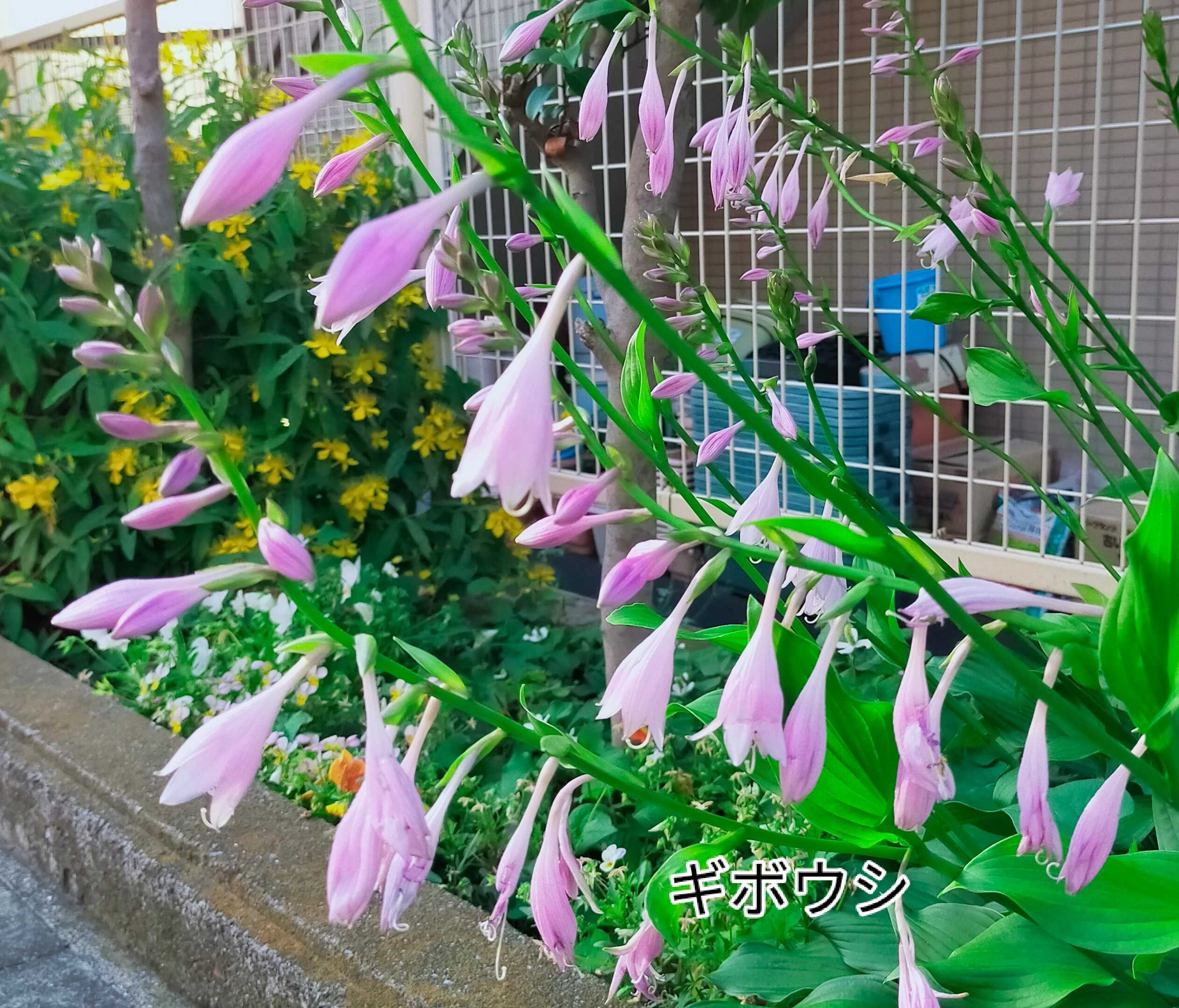 自宅前の学校の植え込みにギボウシが満開で綺麗でした