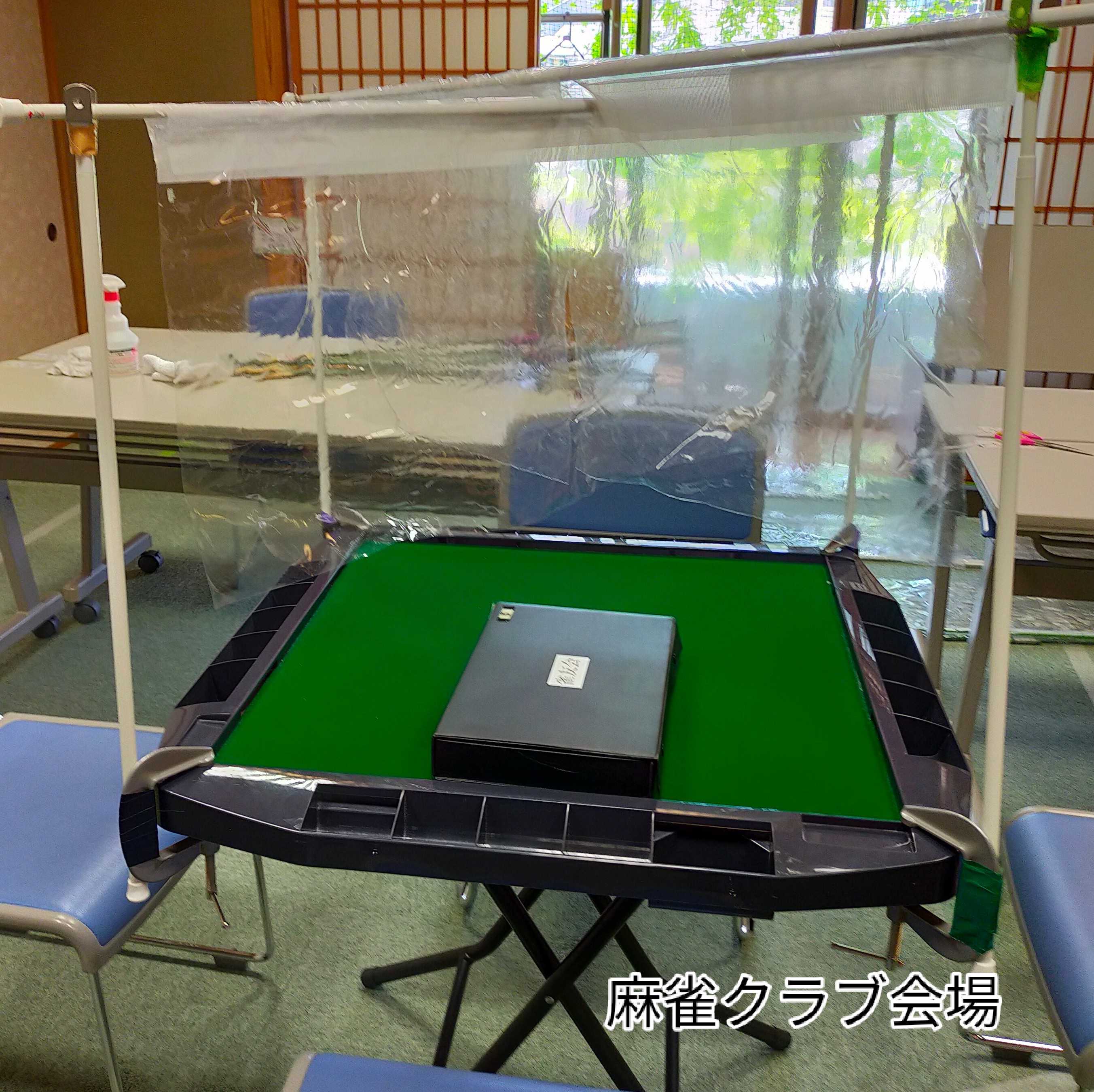 3会長と人で麻雀台にコロナ対策用のシールドを5台貼りました