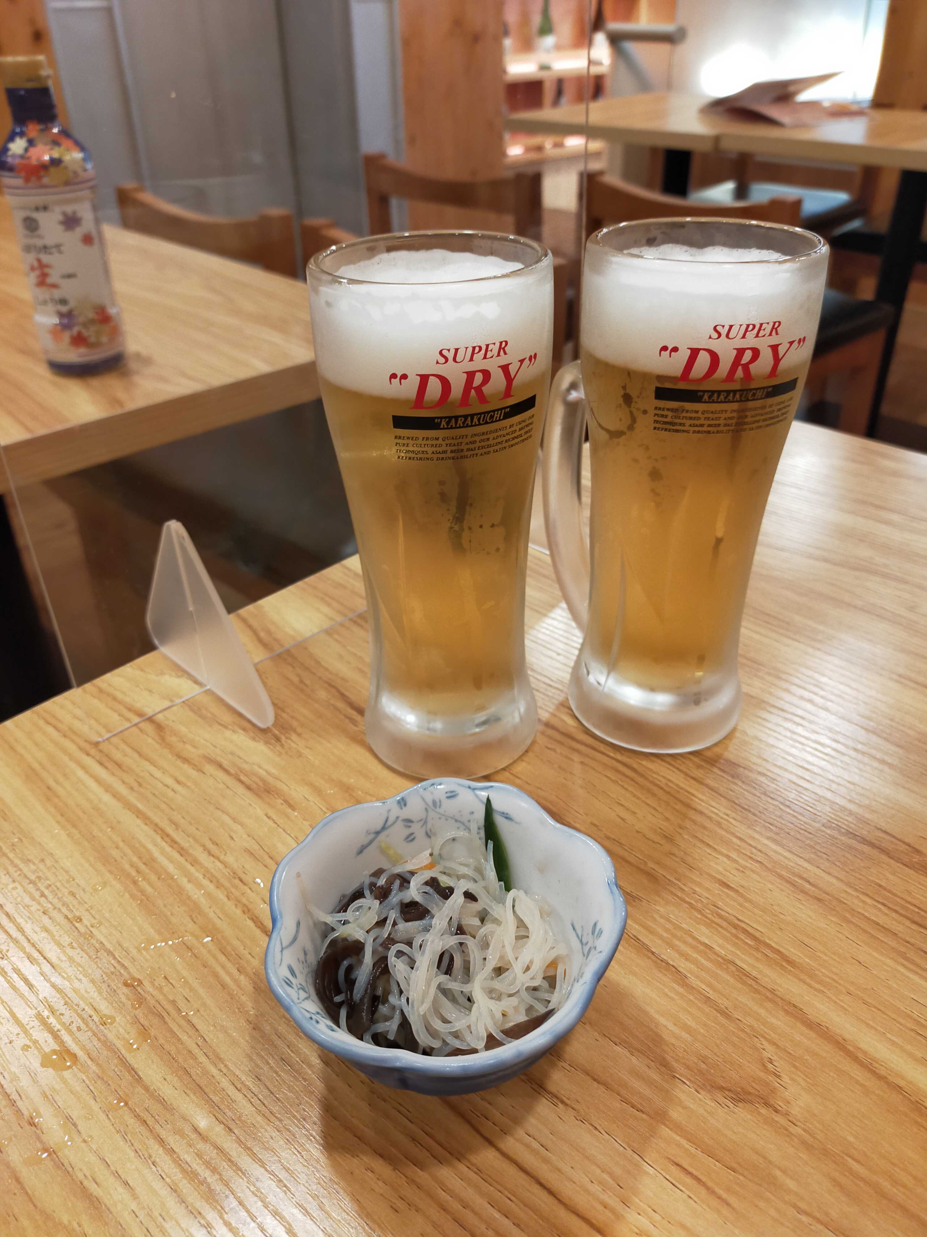 牛ハラミ トントロ かしらを肴にビールで乾杯🍻新宿西口で朝飲みしてご機嫌で12:00に 帰宅しました\(^o^)/
