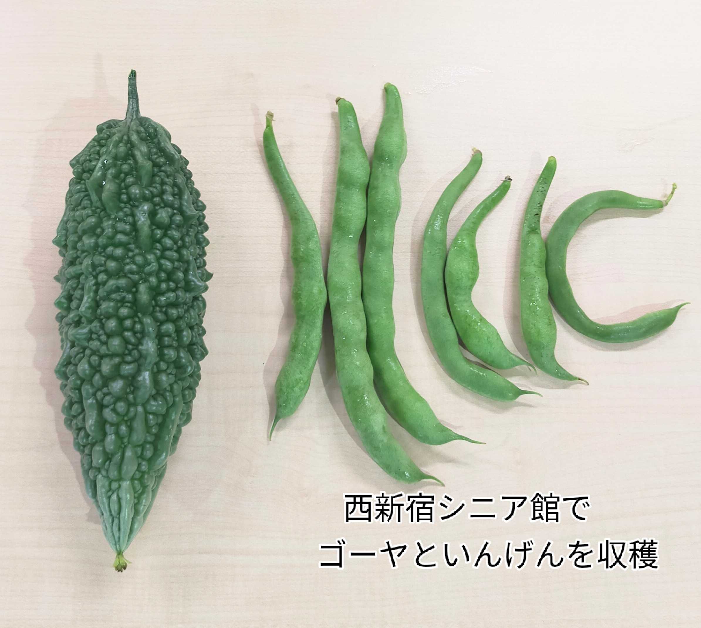 シニア館館長に 許可を頂きゴーヤーといんげんを収穫しま
