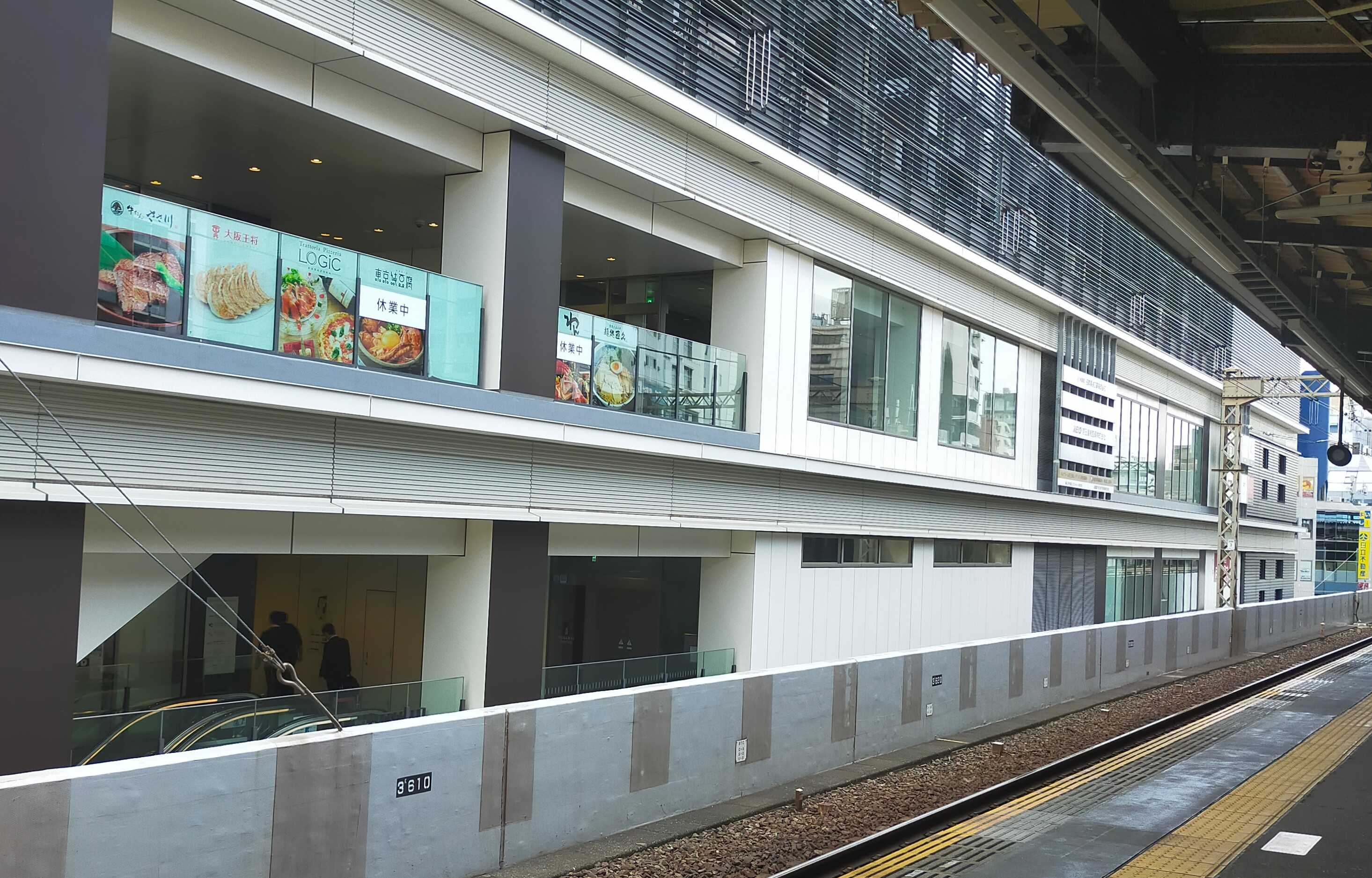 笹塚駅ホームの前には 商業施設の大きなビルが見えます