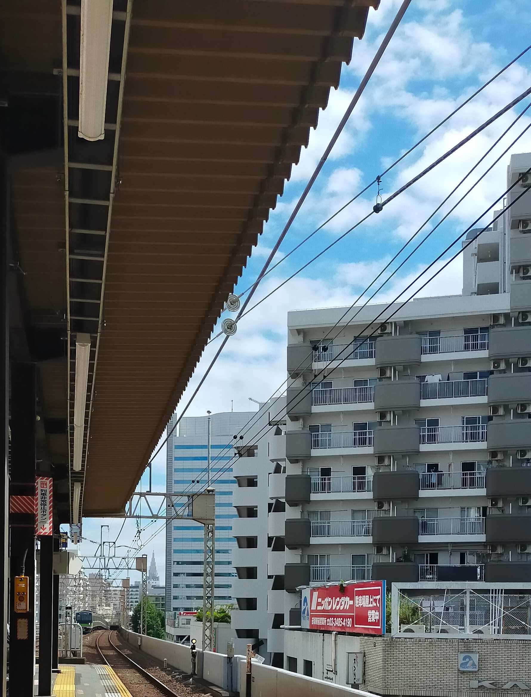 笹塚駅から新宿駅方面を撮影 ブルー色のビルの左側に Docomo本社ビルが見えました
