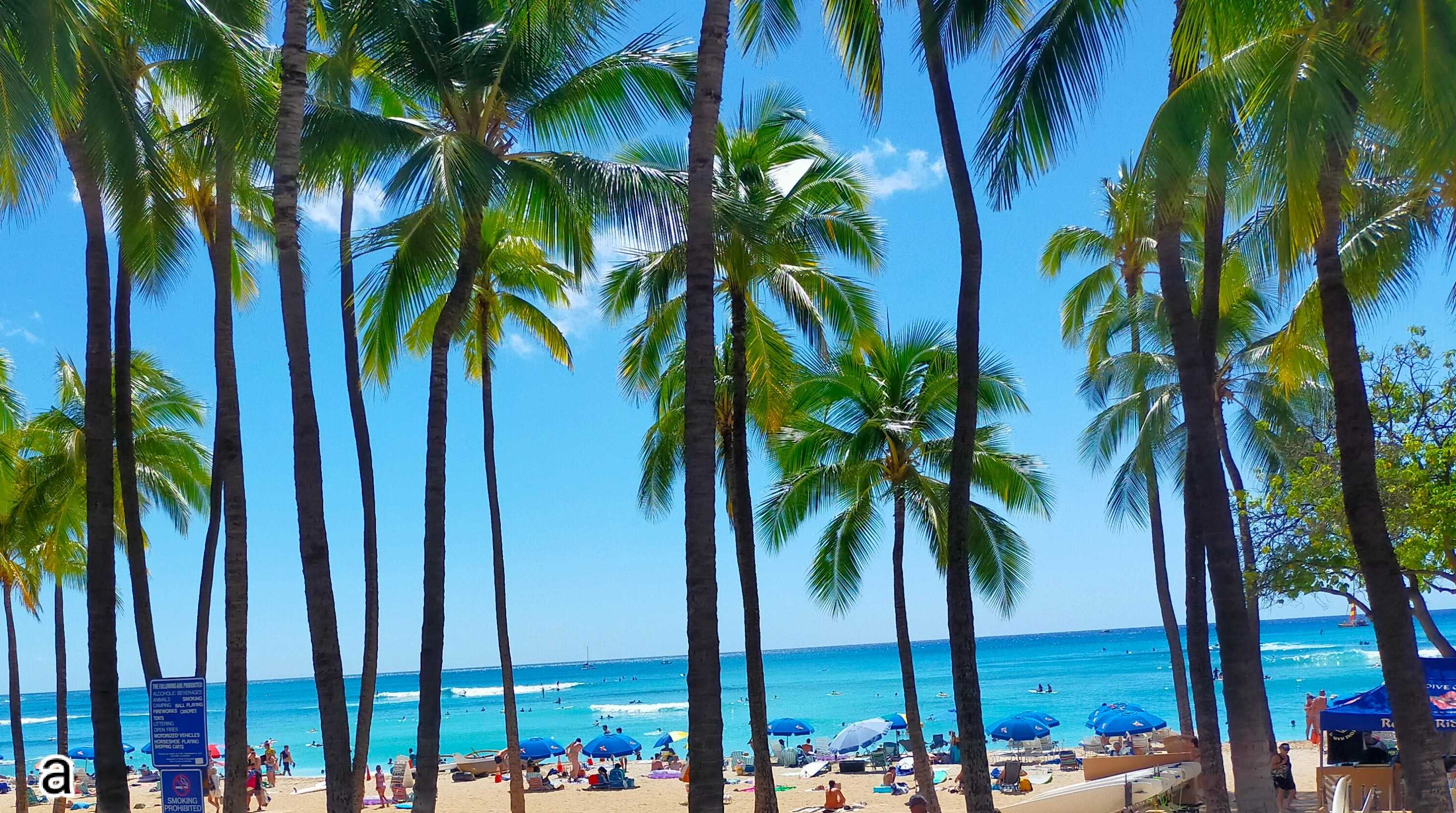 ウィンダムワイキキビーチウォーク10階バルコニーから朝の風景 ホテルの両サイドにワイキキビーチが見えます