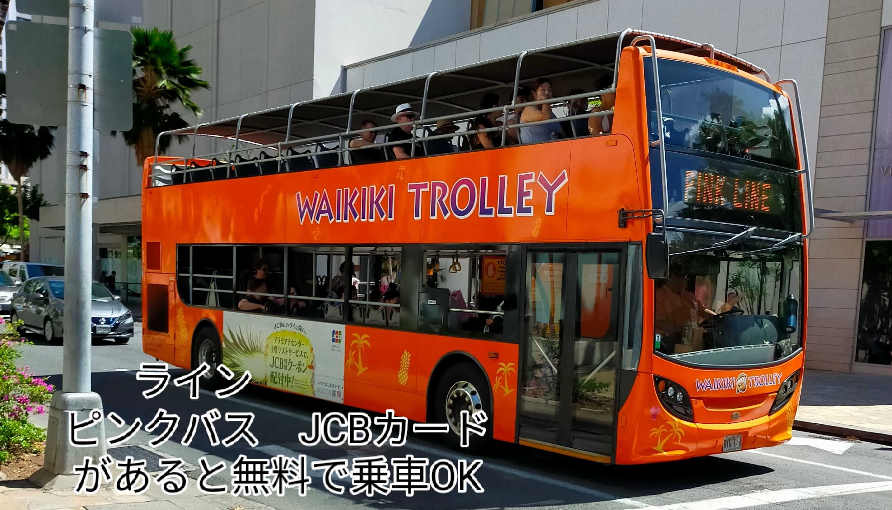 JCBカードを提示するとピンクラインバスが無料乗車OKです
