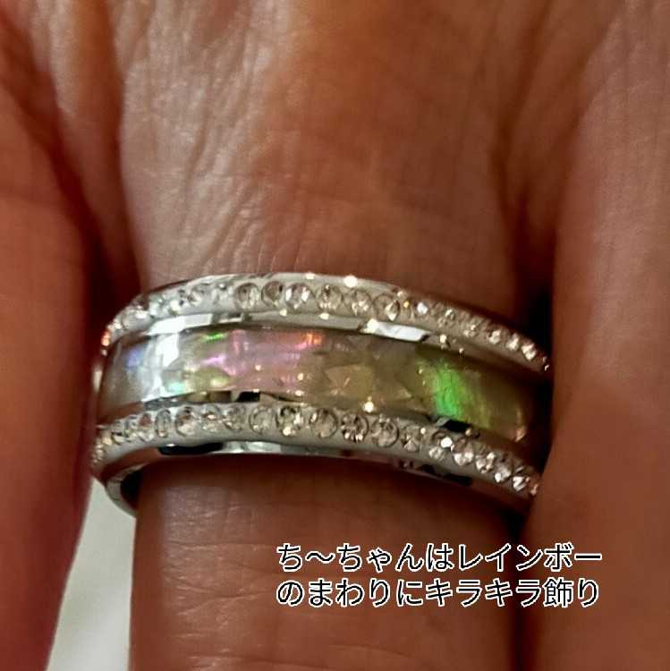 ち~ちゃんはレインボーリングのまわりにキラキラの飾りが