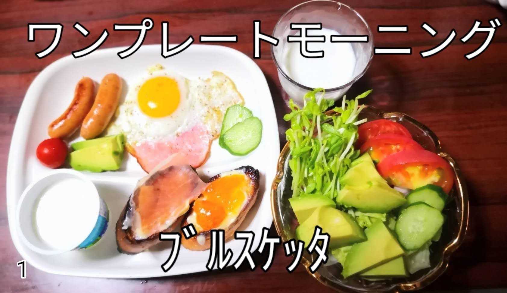 目玉焼き ウインナー 牛乳 ヨーグルト アボカドサラダ
