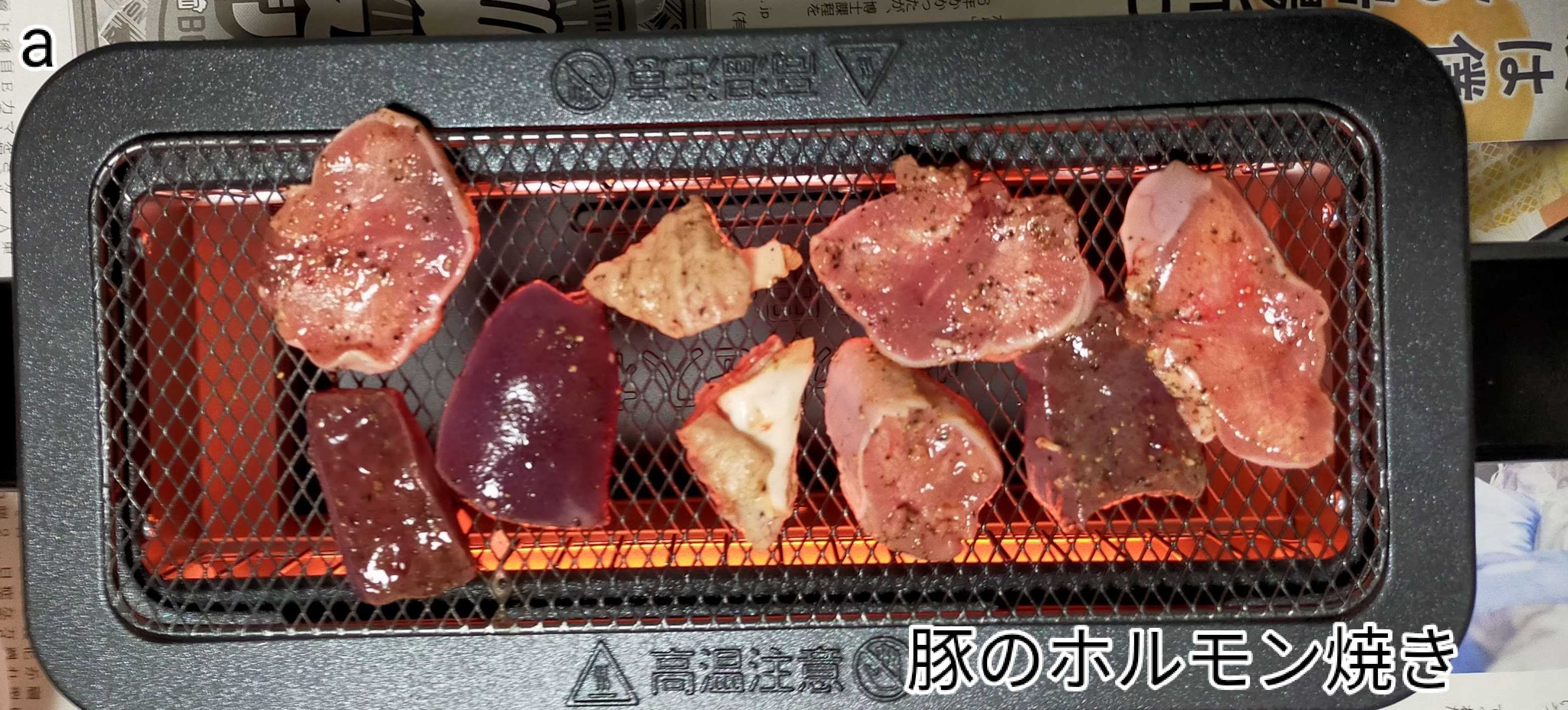 網焼きの上に1日漬けたもつを焼いて食べました