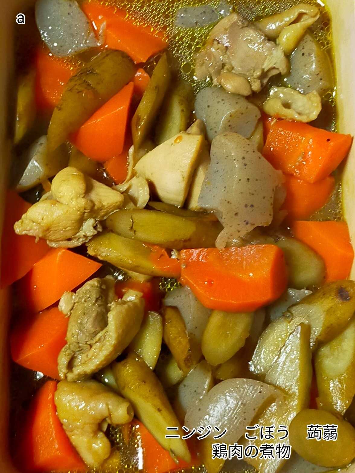男料理(夕食)人参 牛蒡 蒟蒻 鶏肉の煮物