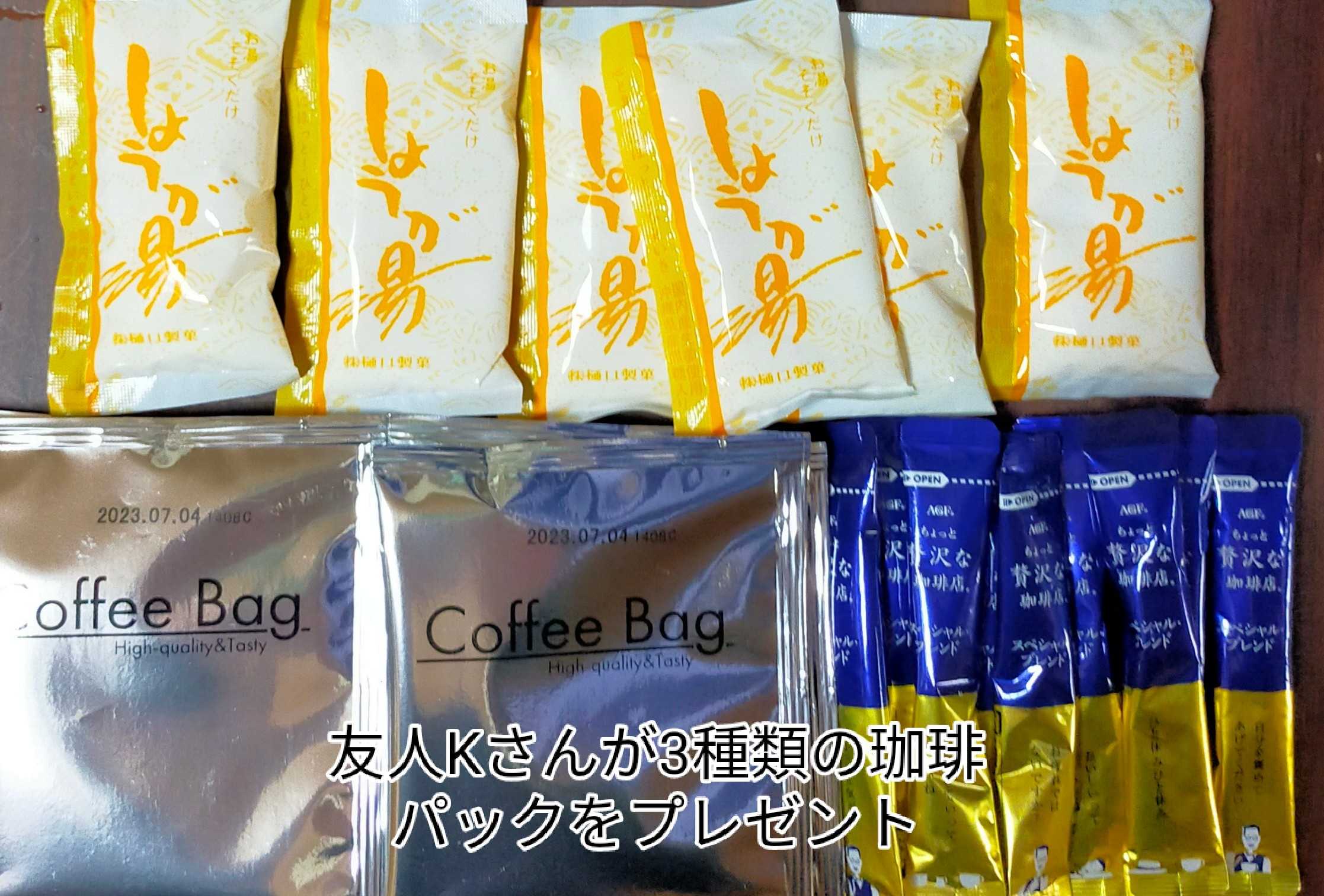 友人Kさんから2種類の珈琲としょうが湯の元を頂きました 3種類全部試飲したら美味しかったです Kさんありがとう