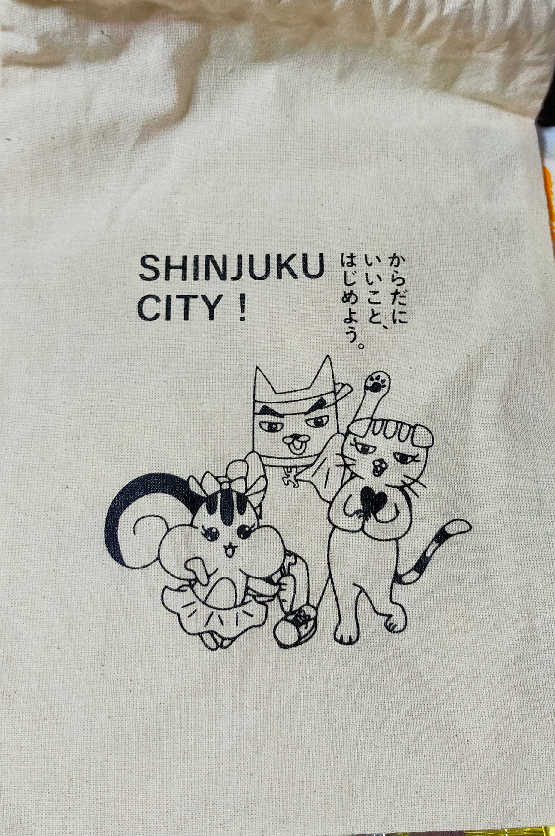 SHINJUKU☆CITYのかわいい絵が入った布巾着に珈琲パックとしょうが湯の元を入れて頂きました ありがとうございました