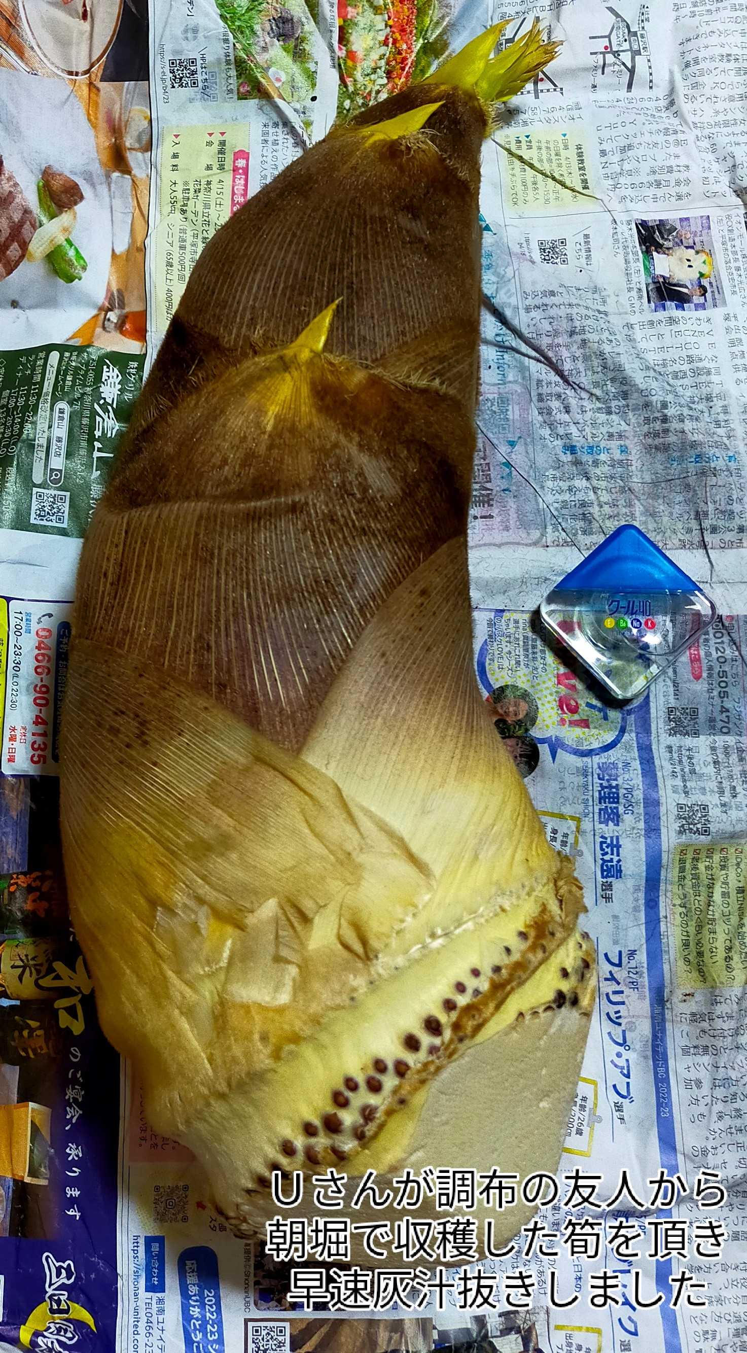朝堀の大きなタケノコ タケノコステーキ にほんブログ村🔝をポチ応援よろしくお願いいたします 更新の励みになりますそらちゃんパパイヤゼリー食べた後は嘴のお掃除します 近所の友人Uさんから朝掘りの大きな筍(30㌢)頂きました早速皮を剥き下処理して米糠で筍を灰汁取りをしましたフライパンにバターを5カット入れブラックペッパーと昆布茶を降り最後に醤油をかけてソテーしました 筍のシャキシャキな食感がとっても美味しかったですにほんブログ村🔝をポチ応援ありがとうございます 更新の励みになります