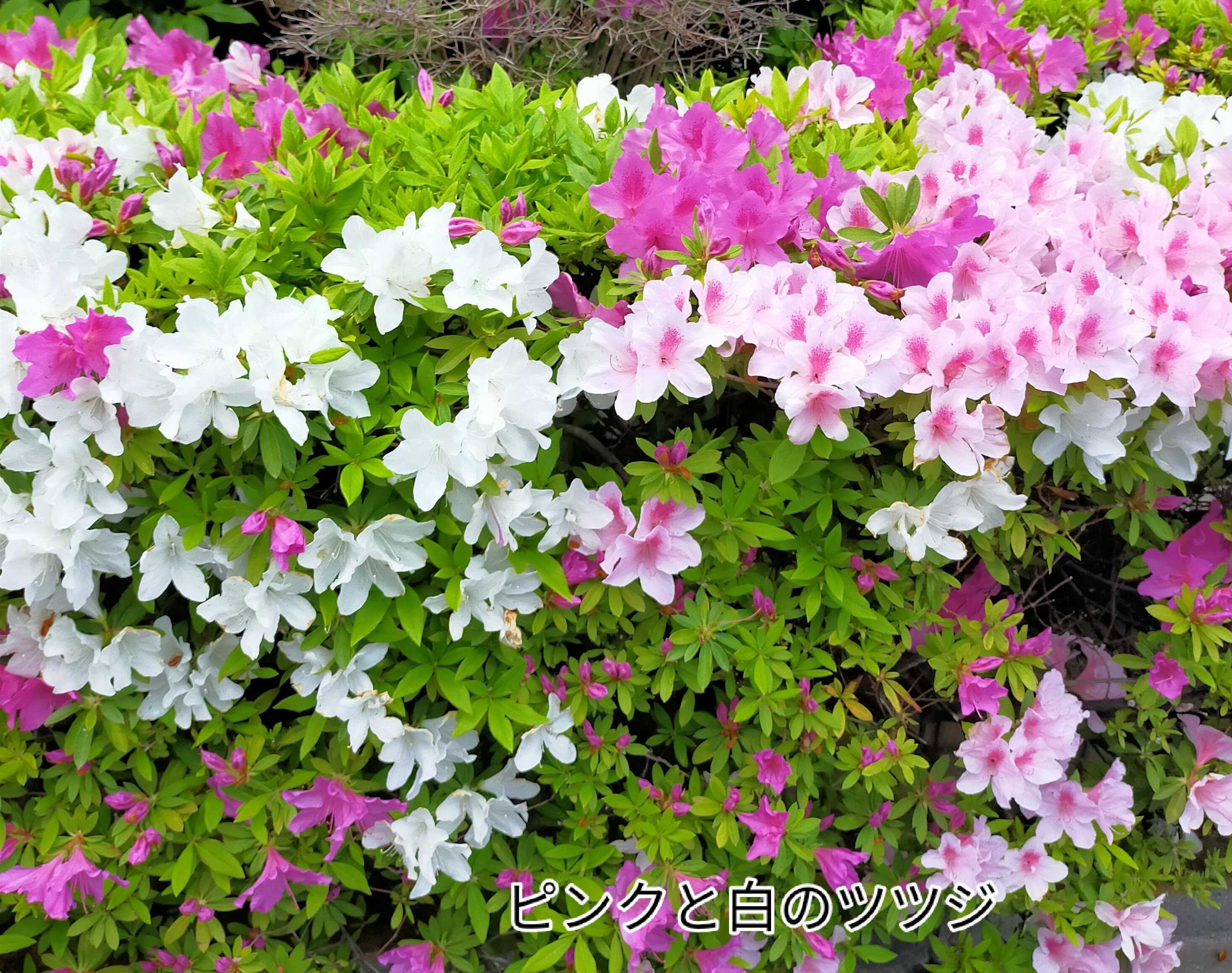川のほとりにはピンク・赤・白色のツツジが満開でした
