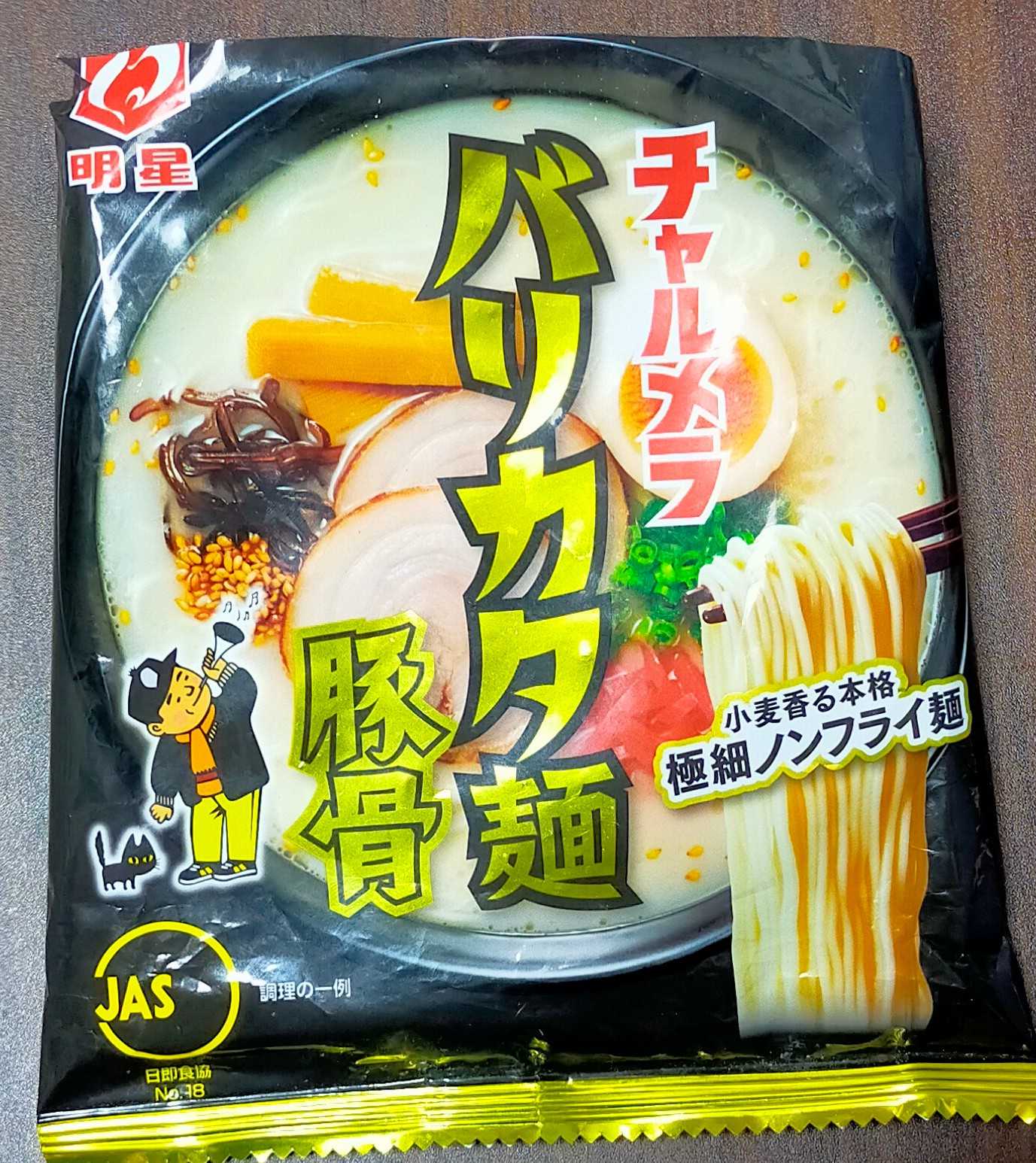 私は始めて明星バリカタ麺豚骨ラーメンを食べました 極細ノンフライ麺が細くてかたいので美味しかったです