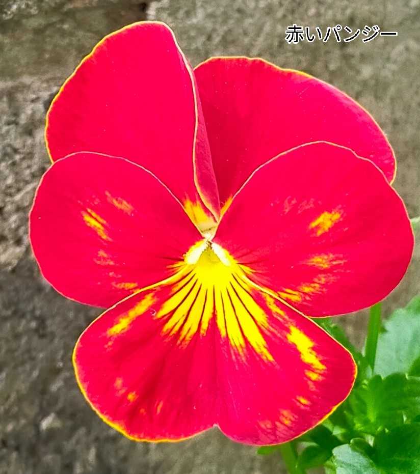 鮮やかな真っ赤なパンジーが咲きました パンジーの花芯の黄色い模様がとってもキレイ