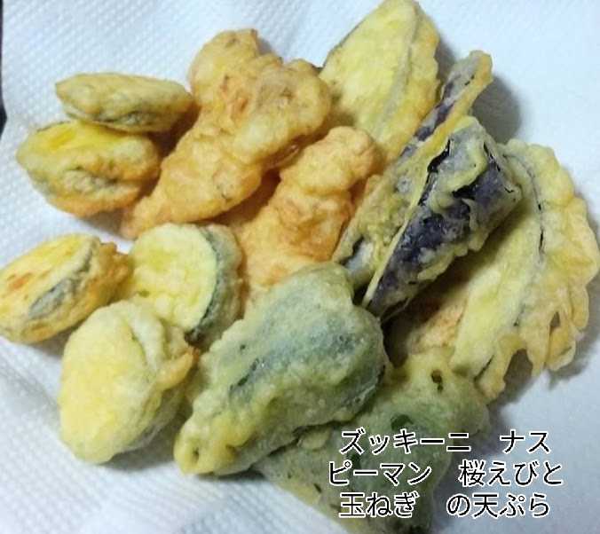 ズッキーニ ナス ピーマン 桜えびと玉ねぎの天ぷら