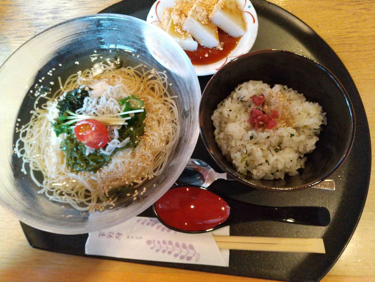 柴又駅前の船橋屋で素麺とくず餅セットでランチしました