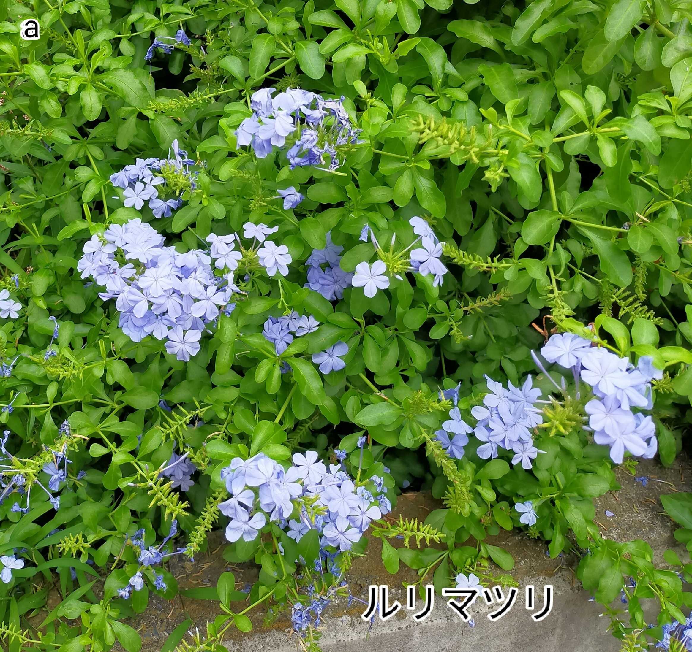 学校の花壇にルリマツリの花がたくさん咲いていました