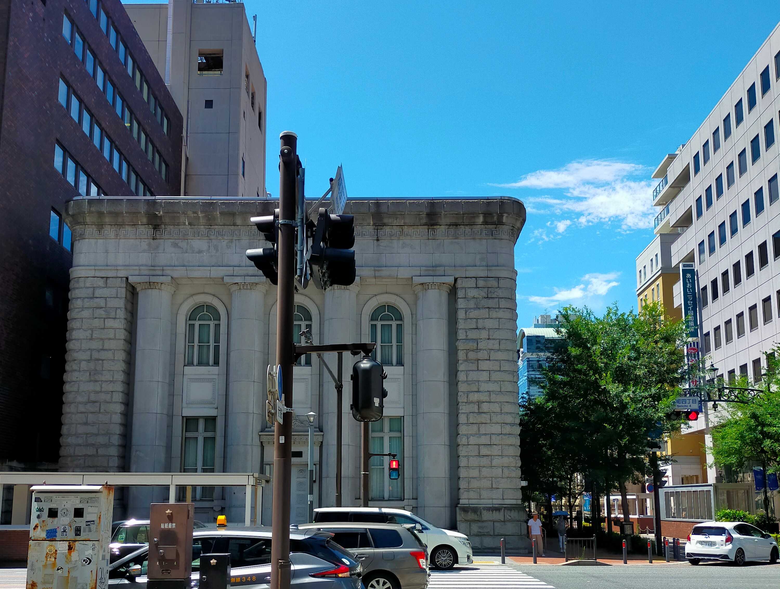 馬車道駅の地上出口交差点風景 右側が馬車道商店街です