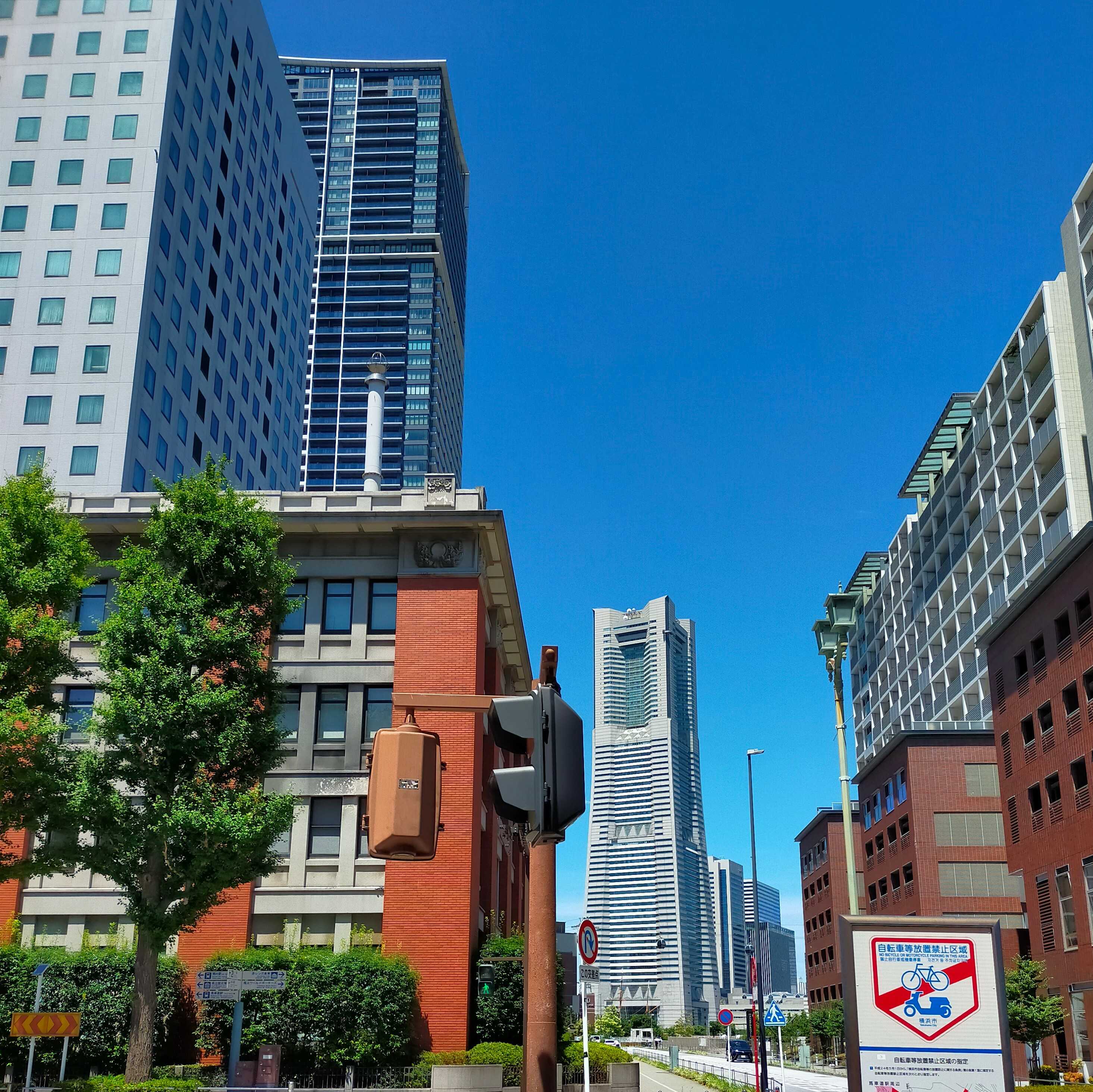 馬車道交差点付近から横浜ラウンドマークタワーが見えます