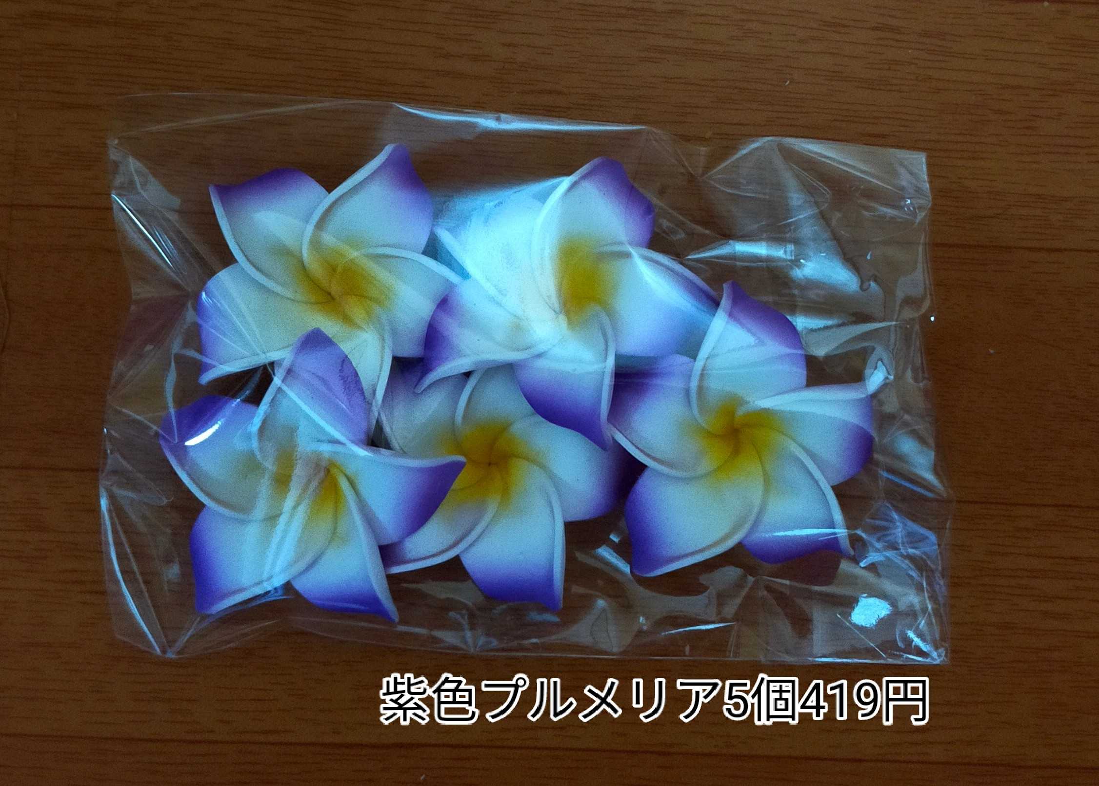 自宅サンルームの観葉植物コーナーに飾るプルメリアの紫色の花の☆プルメリア5個419円