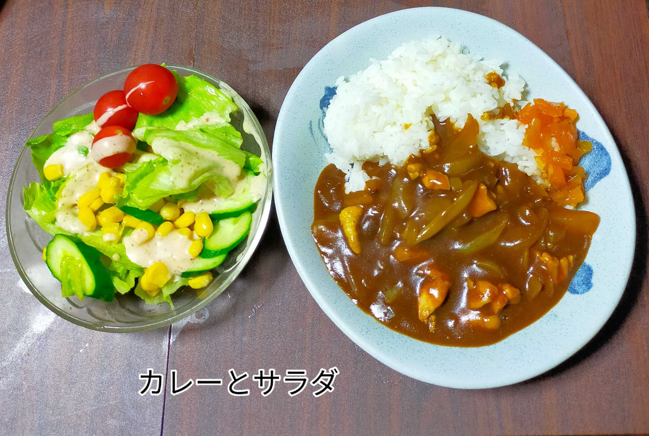 男料理(夕食)カレーライスとサラダ