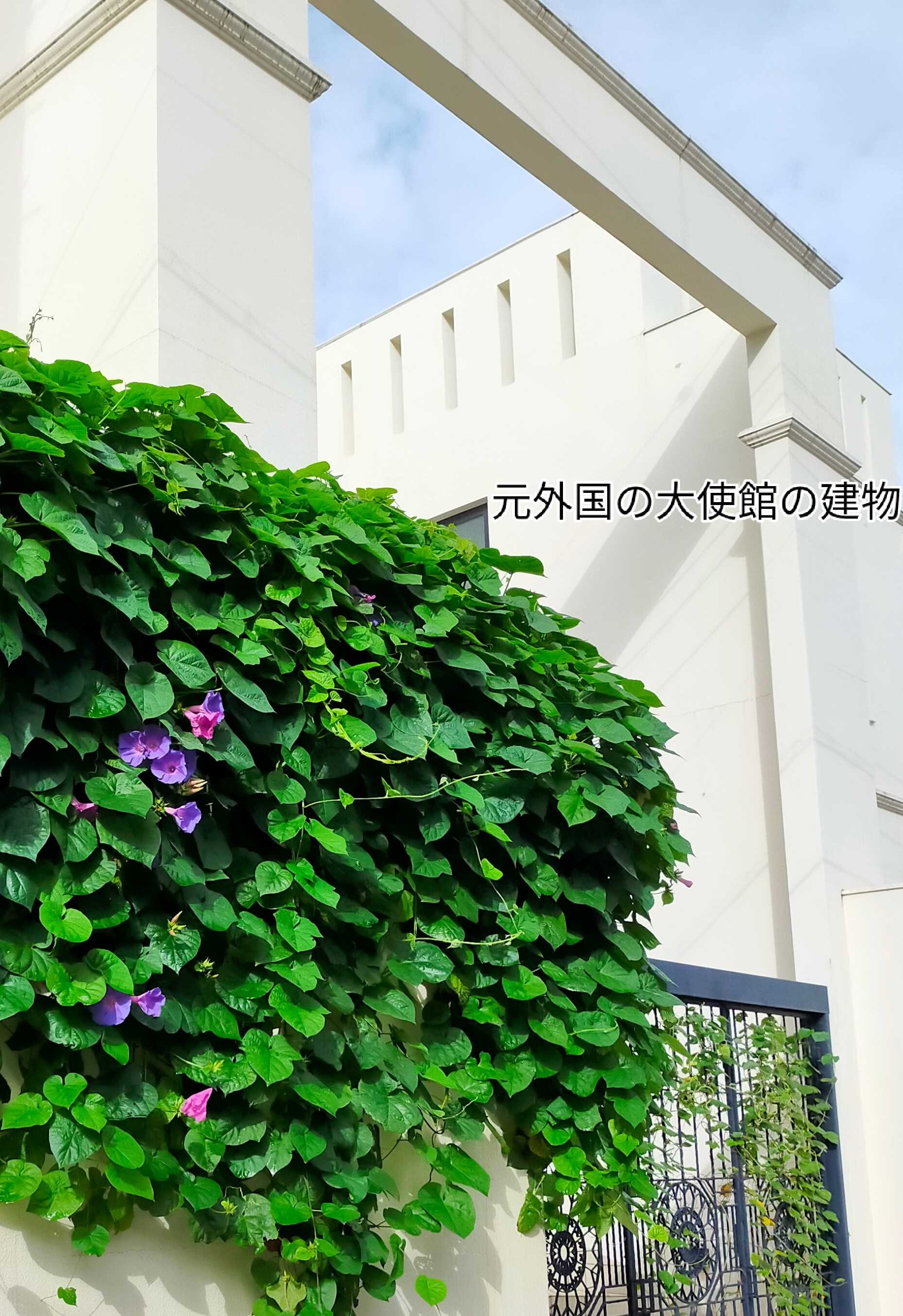 元外国の大使館の壁に毎年琉球朝顔が咲きます