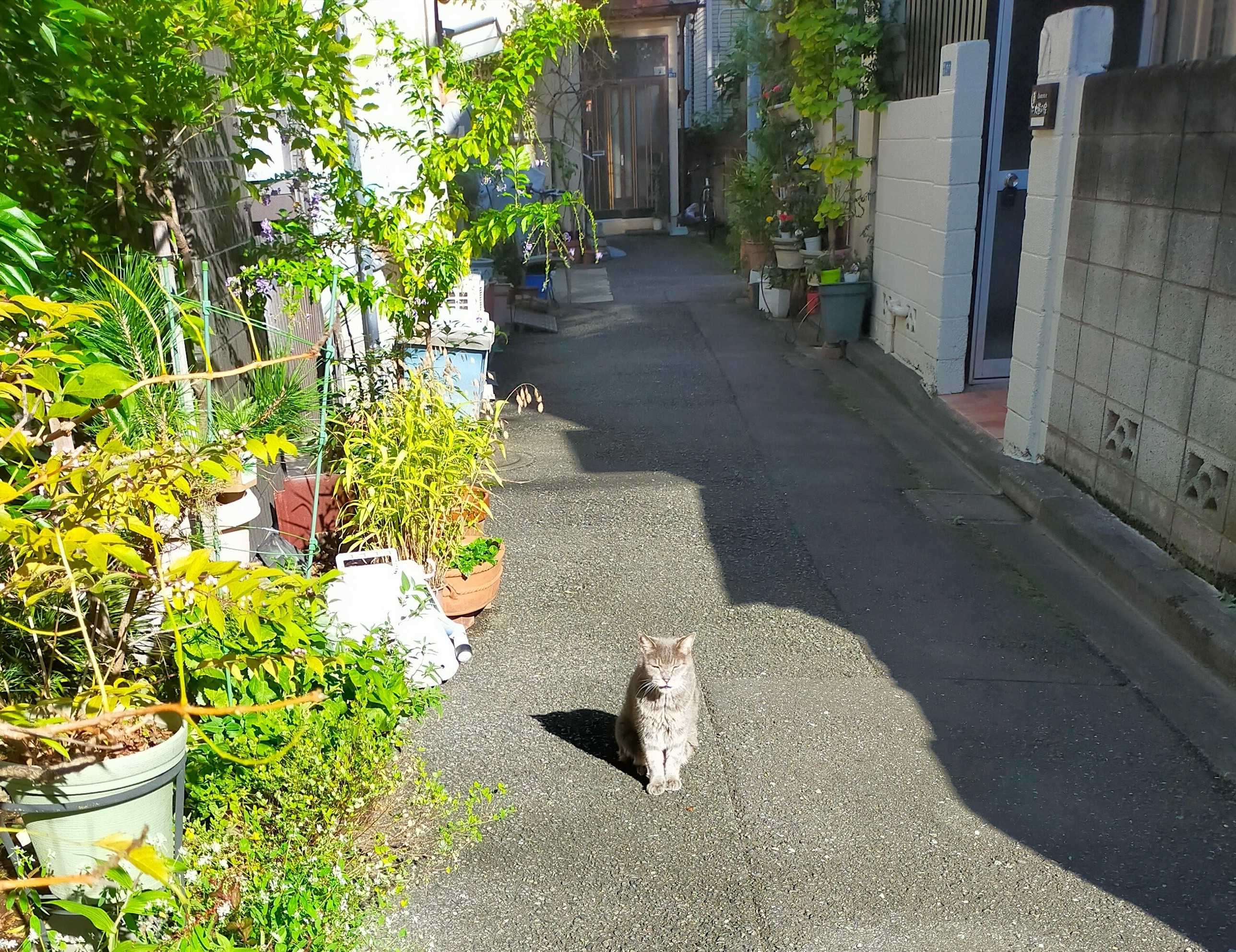 自宅近くの下町情緒が残る懐かしい横丁に地域猫ちゃん発見しました 名前は知らないので 手でおいでと言ったらしばらくしたらこちらに来ました