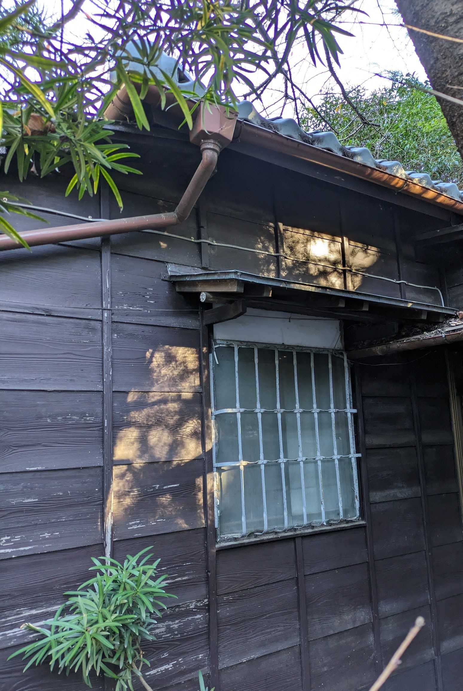 帰り道 懐かしい板張りのレトロな家屋がありました窓の鉄枠と