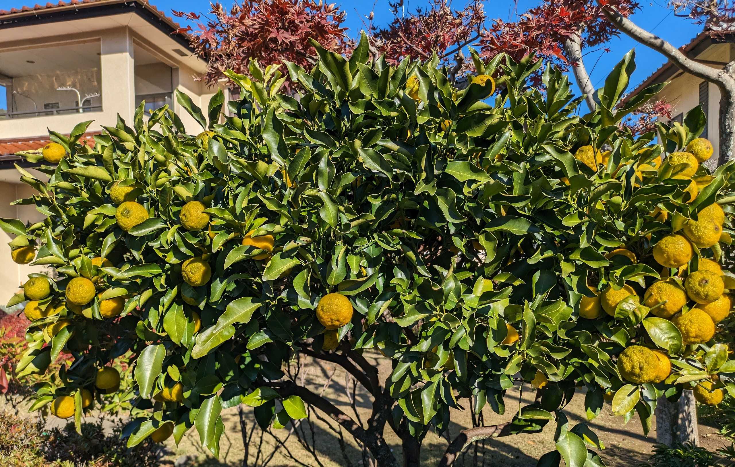 バスに戻る途中に民家に柚子がたくさん実っていました