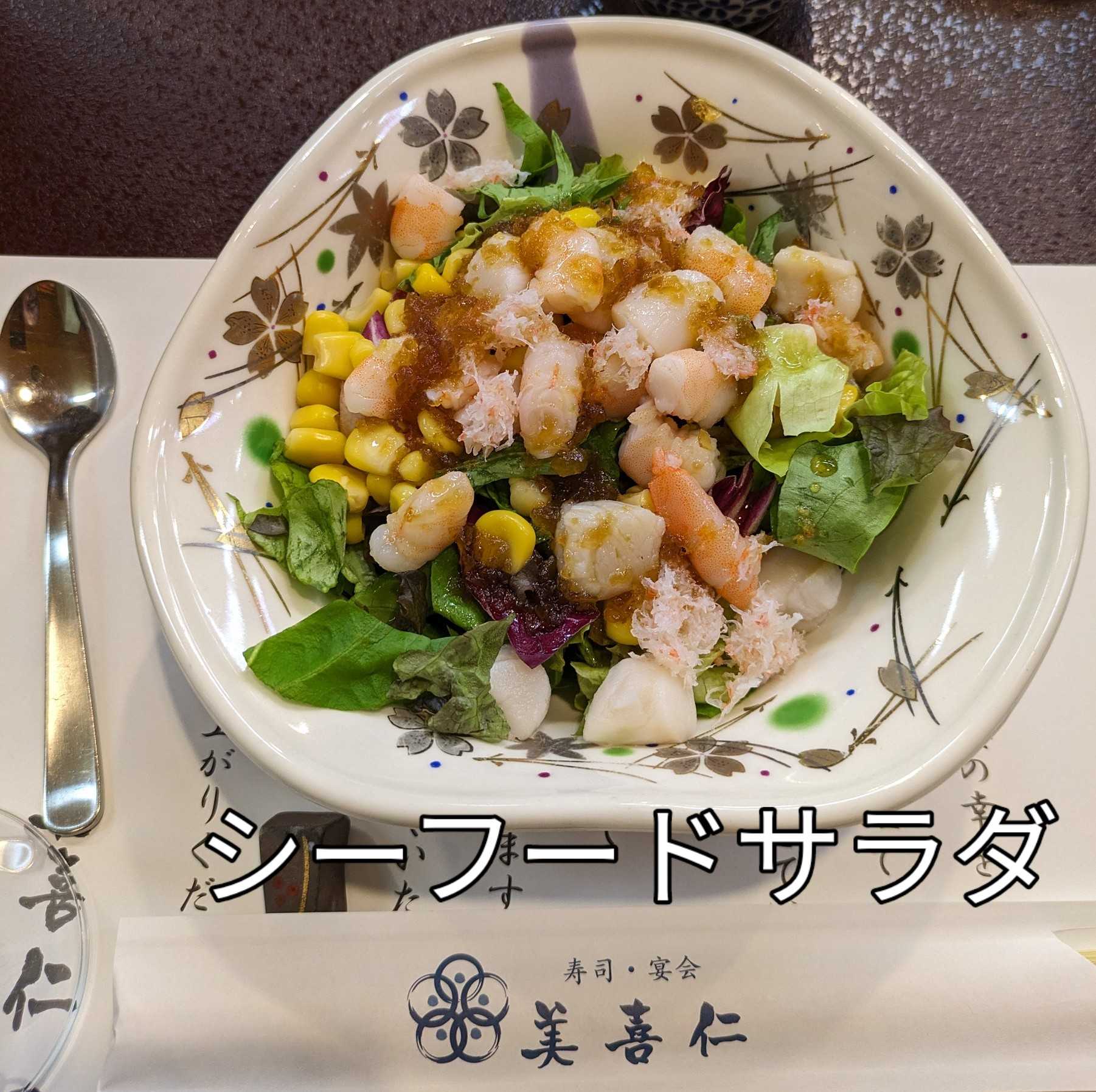 桐生市の美喜仁で昼食 シーフードサラダ たくさんのシーフードが入ったサラダなのでサラダだけで お腹がいっぱいになりました