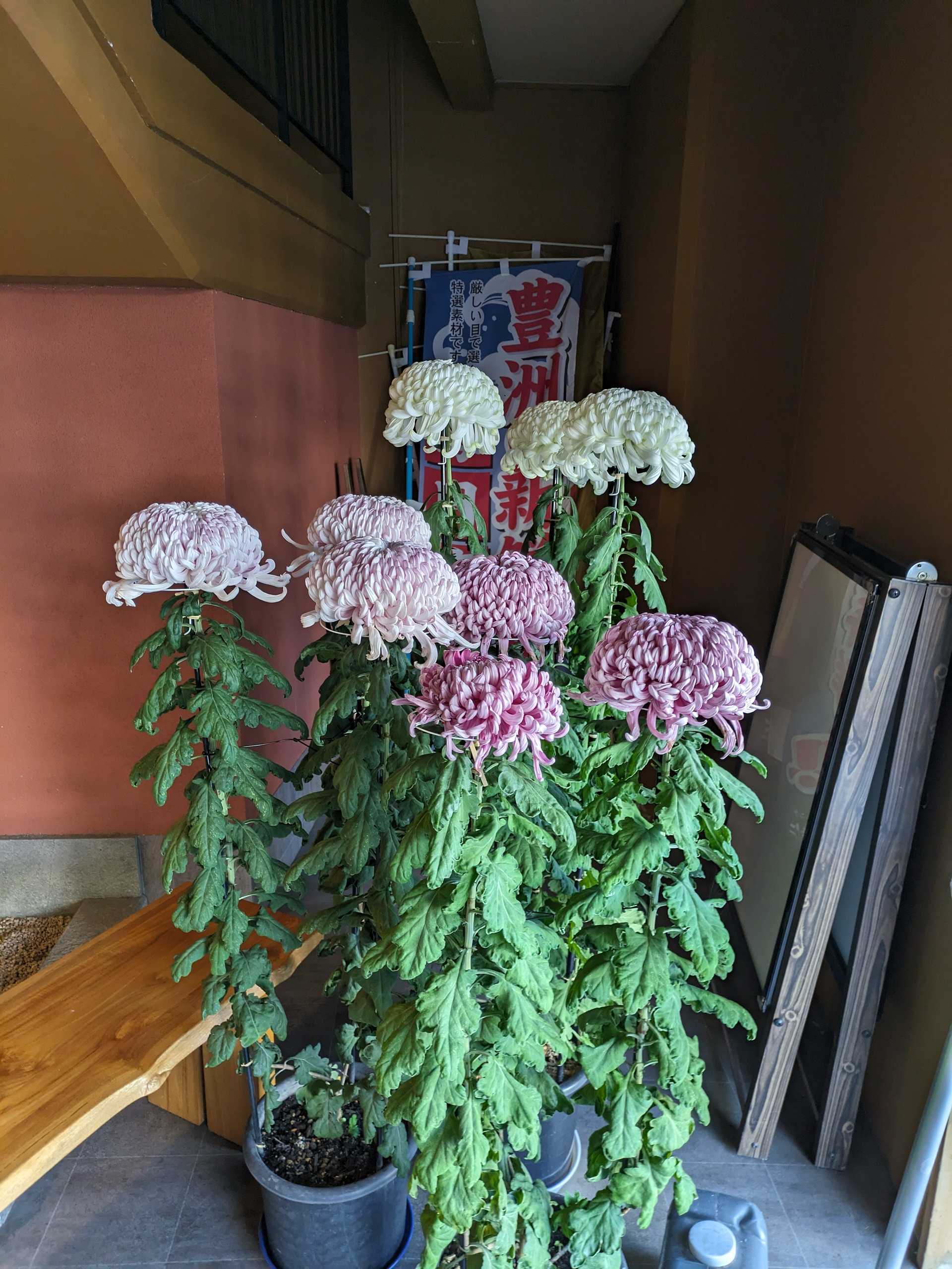 綺麗な菊の鉢が民家にたくさん並んでいました