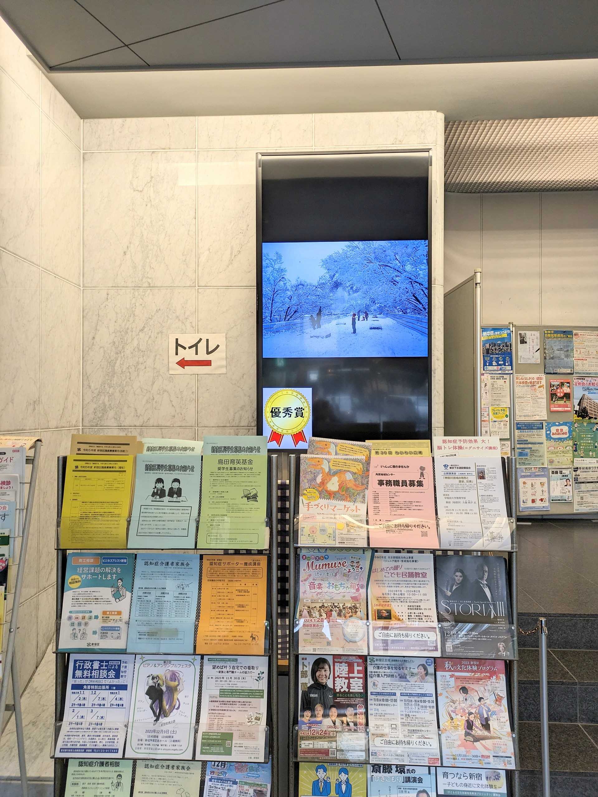 がつのはず特別出張所ロビー1階ロビーのモニターで紹介されています