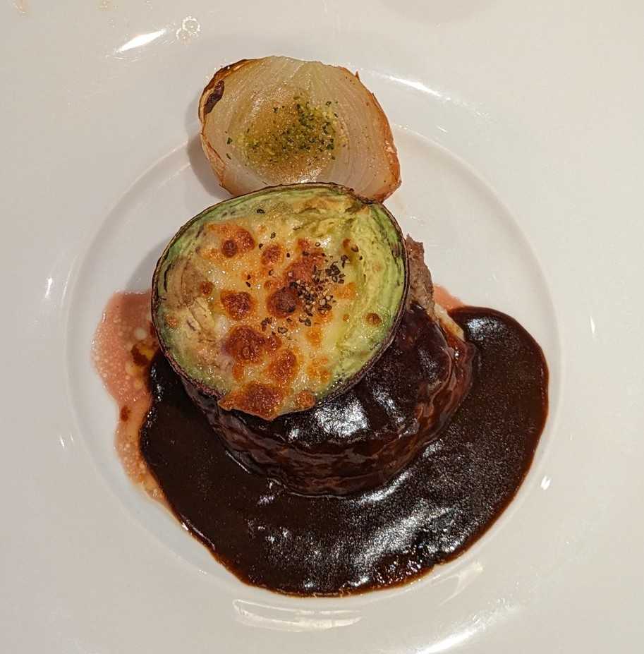 サンマルクで4人でランチしました 全員ハンバーグステーキの黒のデミグラスソース アボカドグラタン乗せ 玉ねぎ半分のボイル