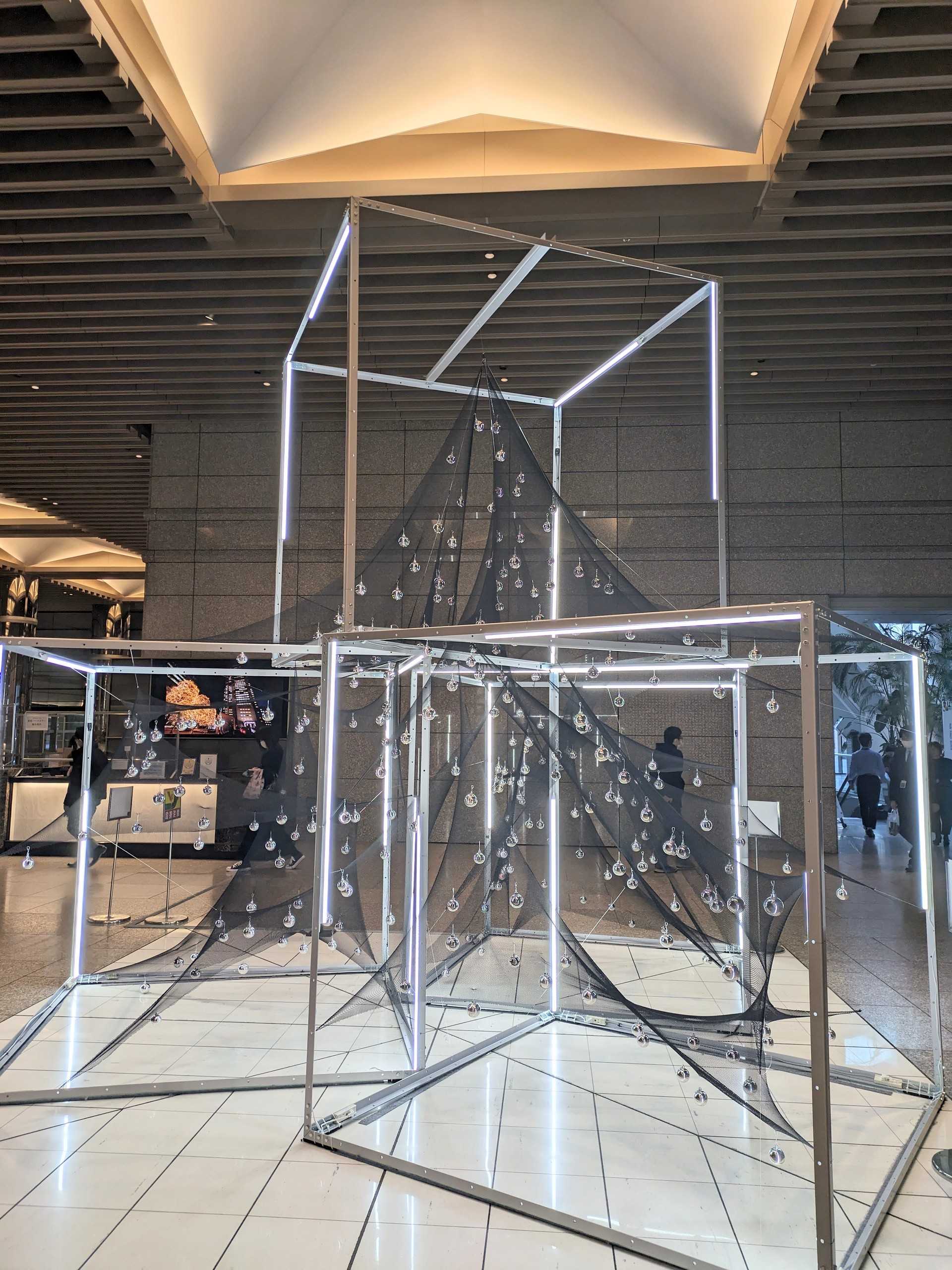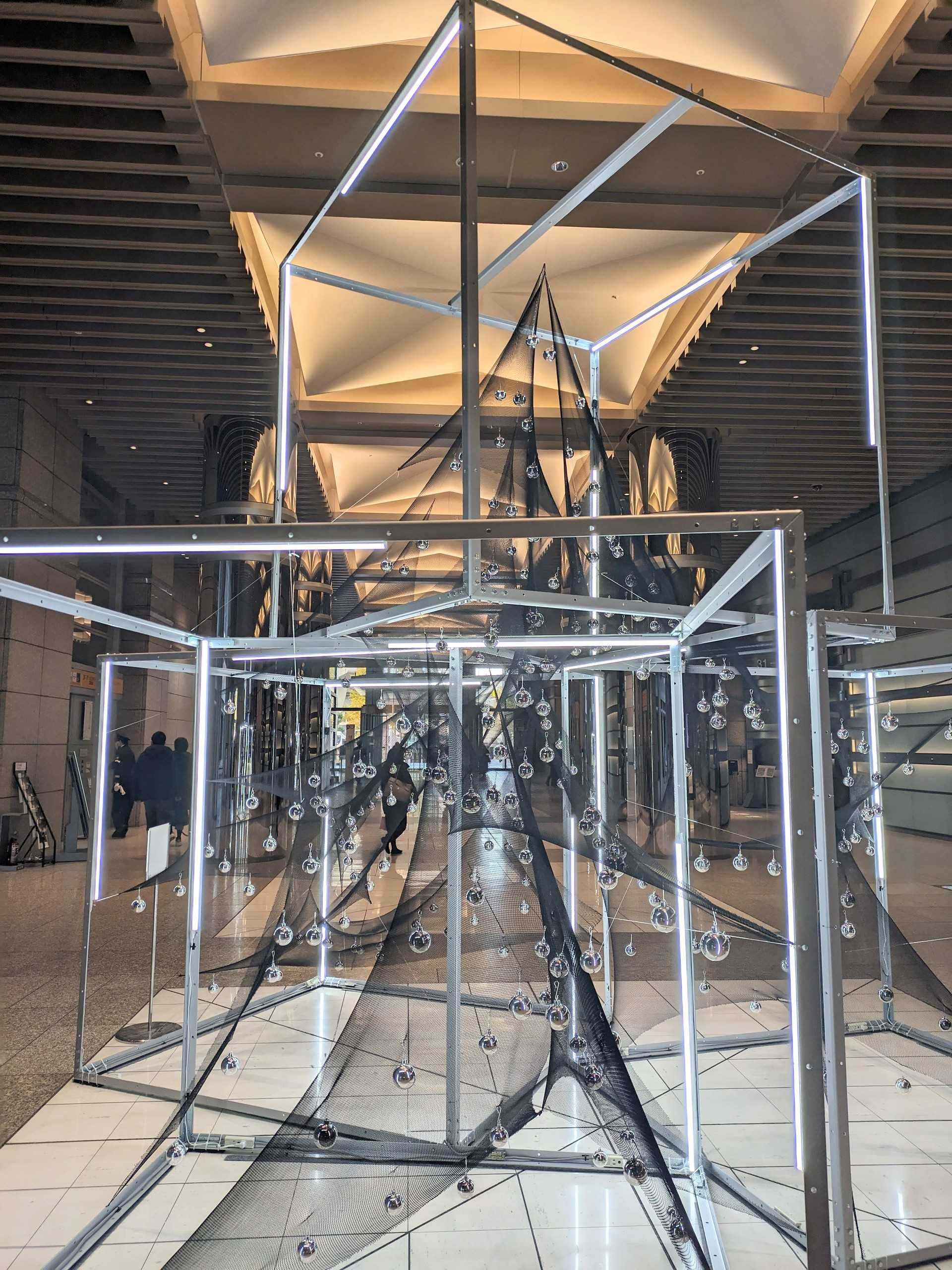 立体的なクリスマスツリーの左側にインフォメーション