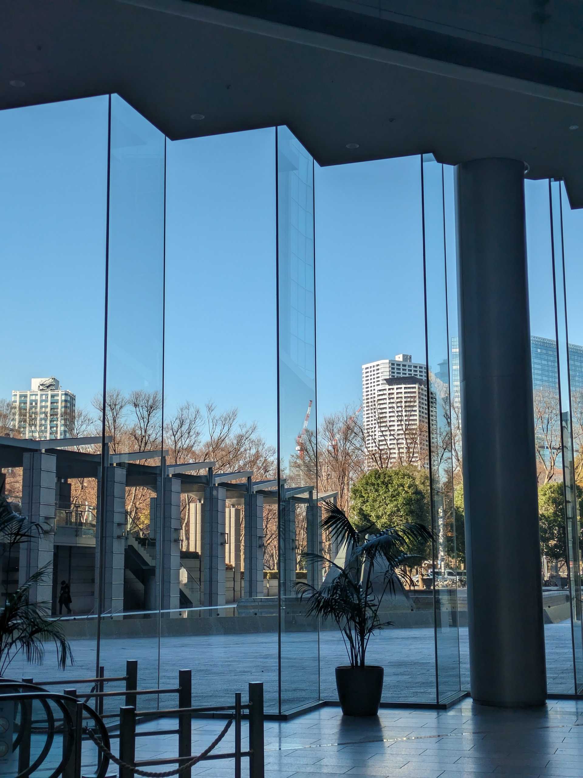 ホテル隣りのハイアットパーク前に新宿中央公園が見えます