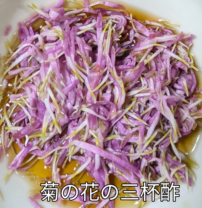 食用菊の花を取って菊の花の三杯酢にしました 菊の香りがして美味