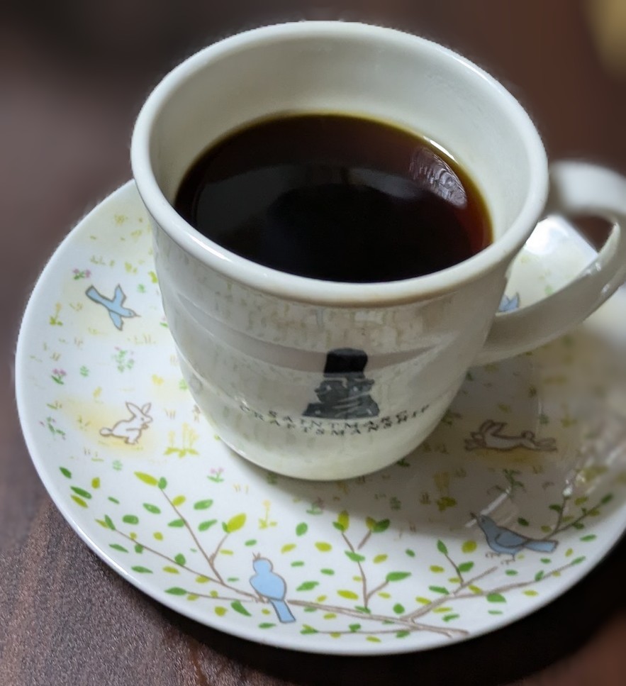 ピーナッツブロックチョコを食べながらブラックコーヒーを飲みました