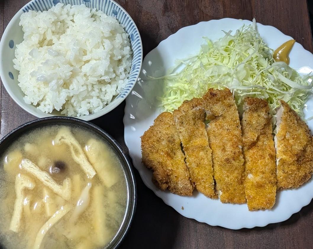 男料理(夕食) 私が揚げたとんかつ しめじと揚げの味噌汁 ごはん